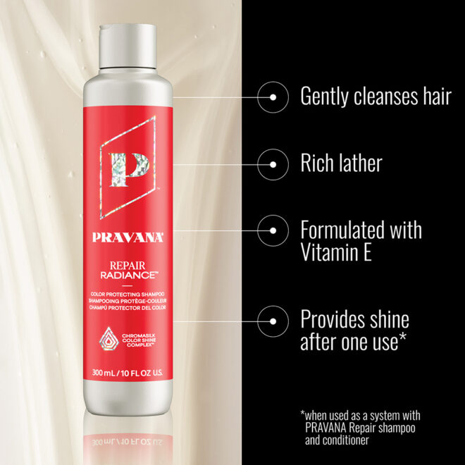 Repair radiance is formulated with Vitamin E and Chromasilk Color Shine Complex