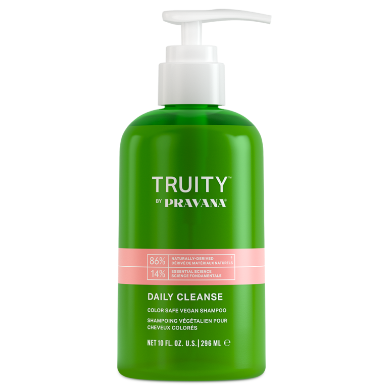 Truity Cleanse is a color safe vegan shampoo + quenches thirsty locks + gently cleanses for soft, shiny hair.